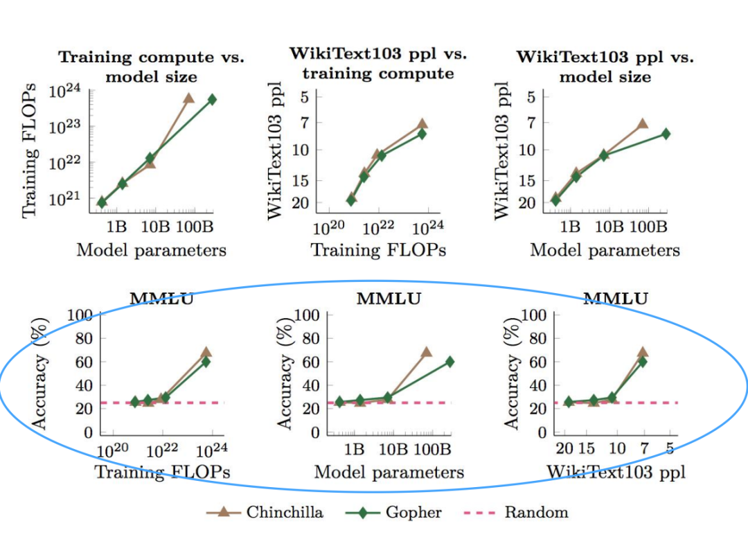 而从实验结果上看,即使模型规模相对较小也同样可以具备涌现能力,但前提是增加更多的训练数据量。以Chinchilla为例,其对标的模型规模是280B是Gopher,而Chinchilla能够以70B的参数规模做出同样的效果,代价是将训练数据提升了4倍。