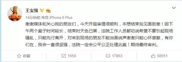 其实事实并不清楚,因为你我都不是当事人。王宝强都表示相信法律公正,而众人揪住进行道德审判又有何实质性意义呢?