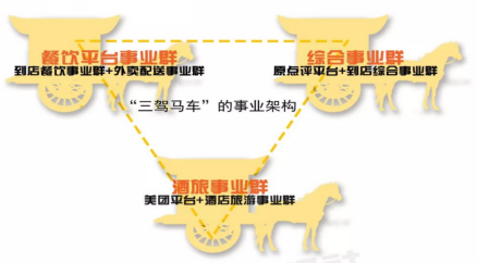 2017年1月,美团迎来新一轮组织架构调整,建立起“三驾马车”的架构。