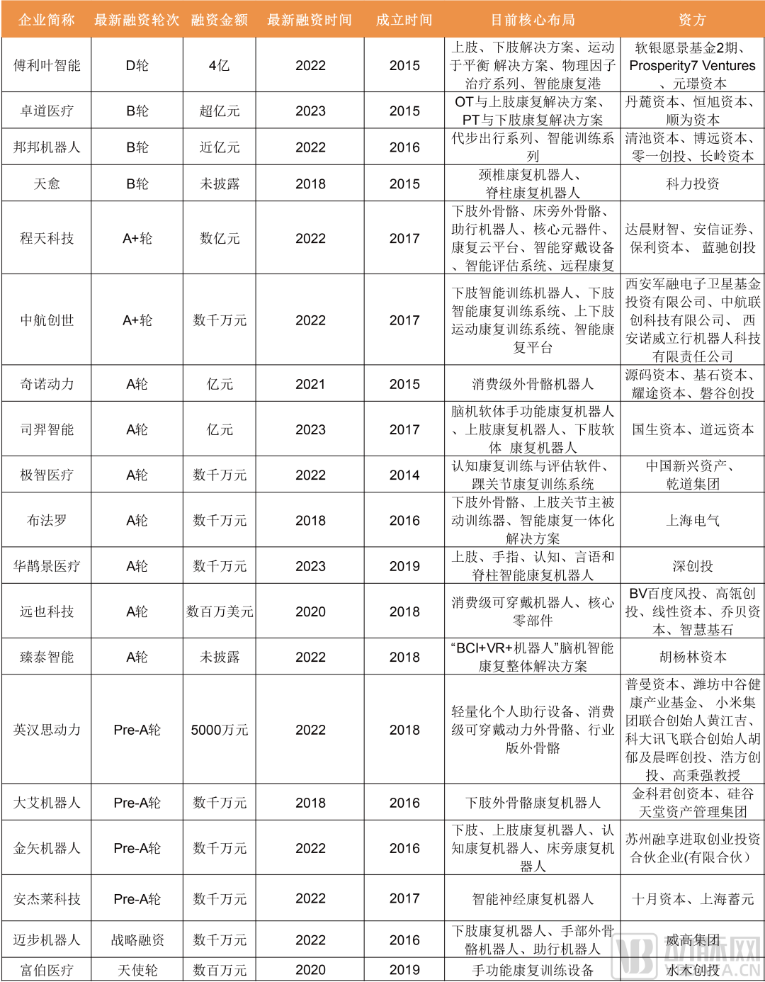 我们对近年康复机器人及其相关产品的企业融资做不完全统计,如下: