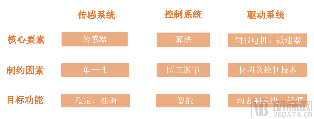 具体来看,传感系统、控制系统、驱动系统的核心要素、制约因素及目标功能如下: