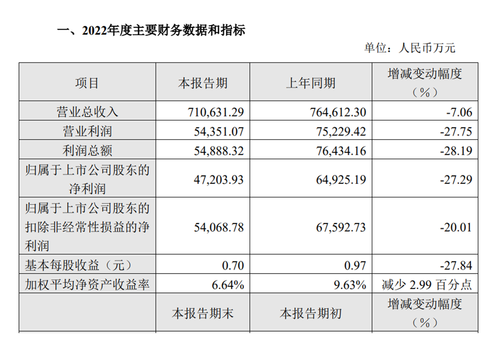 财报显示,报告期内,上海家化实现营业收入71.06亿元,同比减少7.06%;实现归属于上市公司股东净利润4.72亿元,同比减少27.29%;实现归属于上市公司股东的扣除非经常损益的净利润5.41亿元,同比减少20.01%。