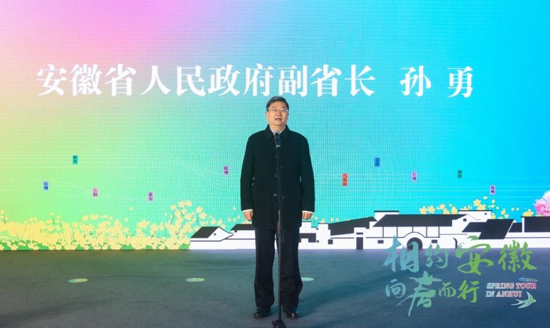 3月17日,由省委宣传部指导、省文化和旅游厅主办的“相约安徽·向春而行”百家媒体旅游推介活动启动仪式在合肥举行。省人民政府副省 长孙勇宣布活动启动,省委宣传部常务副部长陈韶光为媒体采风团授旗,省人民政府副秘书长汪春明、省文化和旅游厅厅长袁华共同为“皖美好味道·百县名小吃”特色美食村代表授牌。省文化和旅游厅副厅长王靖主持启动仪式。