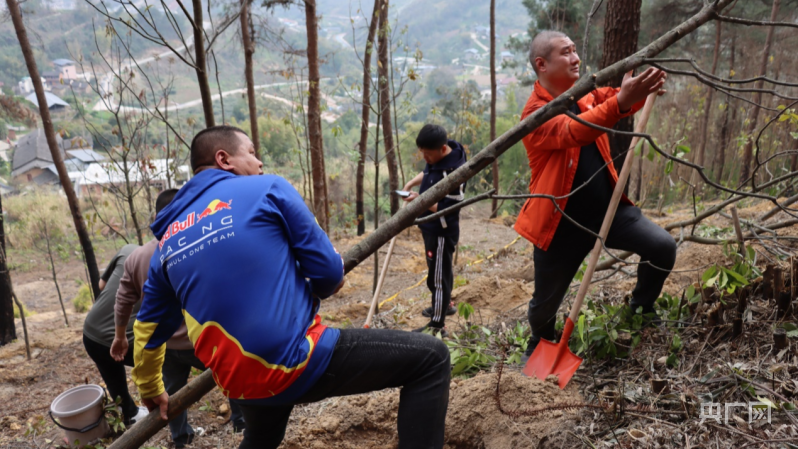 志愿者们在搬运树苗(央广网记者 白刁尹 摄)