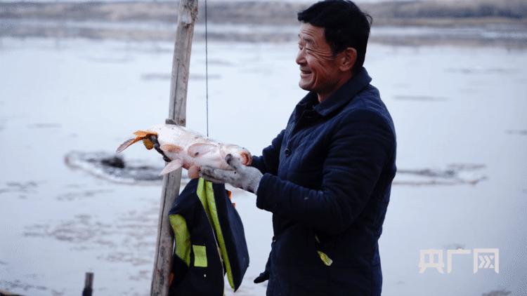 捕鱼人手捧“黄金大鲤鱼”(央广网记者 魏全民 制图)
