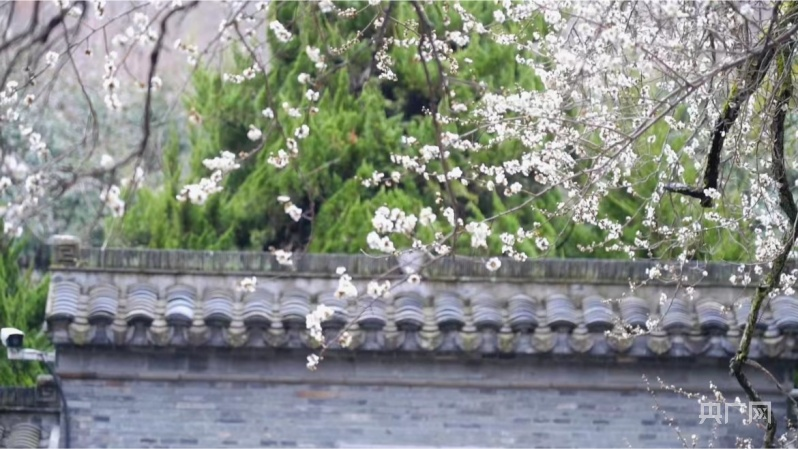 亭内古梅绽放(央广网记者 张宣剑 摄)