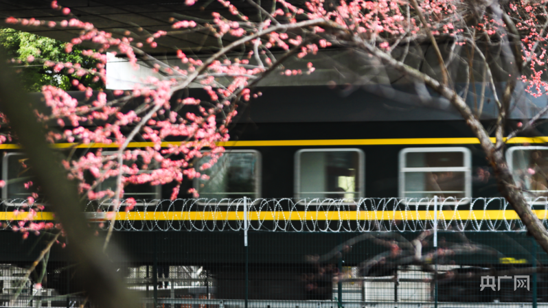 开往春天的列车与红梅相遇(央广网见习记者 孙维庆 摄)