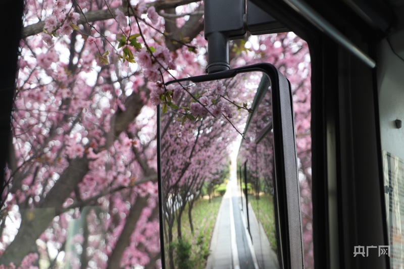 公交车穿行在花海中(央广网记者 夏莎 摄)