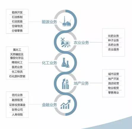 中化集团在农业领域的耕耘主要集中在化肥领域,仍然以贸易见长,旗下上市公司中化化肥(HK.0297)是国内最大的化肥供应商和分销服务商。中化集团旗下种子业务和农药业务虽然在国内细分市场中也有很大的领先优势,但相比较中国化工而言则稍显逊色。所以二者如果能够结合,那么在农业领域将有很大的互补性,业务将包括种子、农药、化肥、饲料等农业刚需。