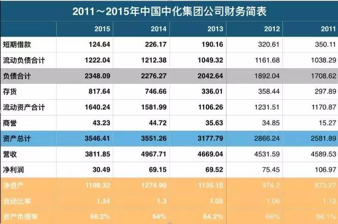 由于商誉的实现具有很大的不确定性,所以很多投资人在计算净资产时比较注重该项,有些投资者甚至直接将其剔除,如著名的“股神”巴菲特。从统计数据来看,2015年中国化工净资产为706.57亿,较上一年大幅增长241.76亿,但是如果剔除商誉因素,则是在减少。2016年如果能完成对先正达的收购,预计商誉还将继续扩大。