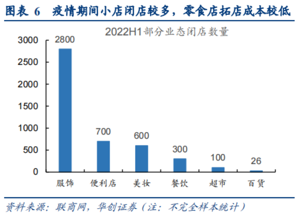 服饰品类闭店量最高 租金低,零食量贩店本身也没有大型器械,借此机会低价租下门店,改造后就可以营业。