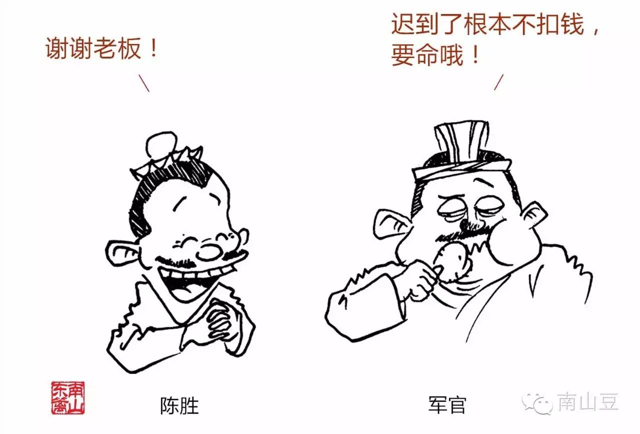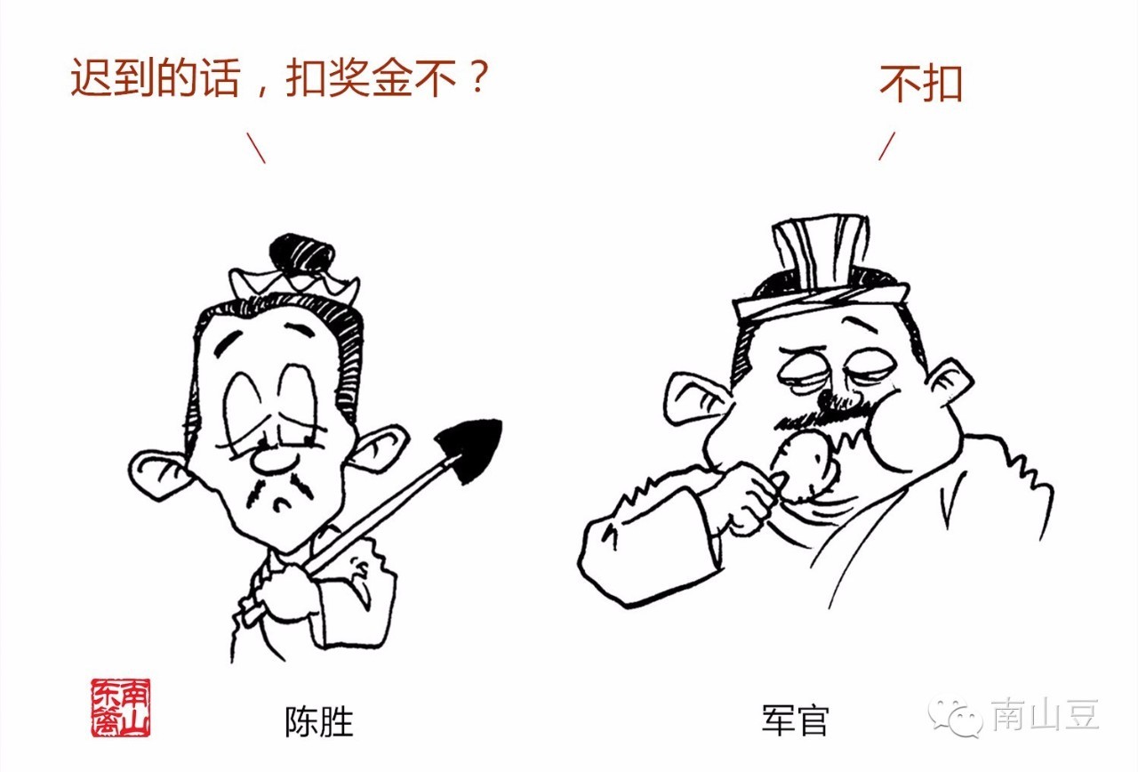 秦二世元年,陈胜、吴广等一拨人被征发到渔阳戍边,走到大泽乡时,天降大雨,眼看无法按时到岗了。