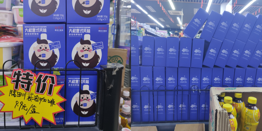 近日,笔者走访安徽宣城一超市时发现,以往独占整侧货架的隅田川袋泡咖啡如今只剩两排商品,其余则被置于折扣区以9.9元/盒的半价形式出售。奇怪的是,货架上隅田川正价商品与折扣区内的特价商品生产日期为同一天,且保质期仅剩5个月。
