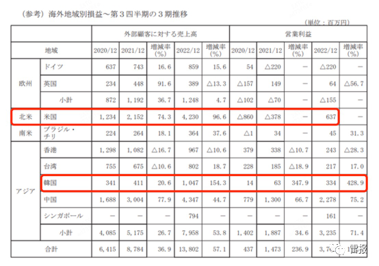 欧洲市场虽然销售额达到了12亿日元,同比增长4.7%,但营业利润仍然亏损1亿日元。主要的原因是随着销售额的增加,销售、总务和行政费用也同样飙升,最终录得营业损失。