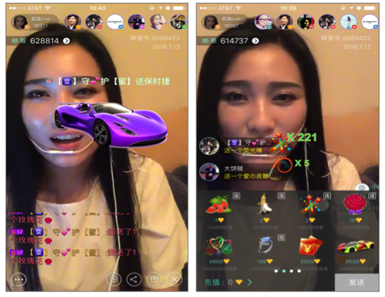 在映客上,一个观众刚给主播送了一辆跑车,价值 45 美金(主播可以得到 15 美金左右)