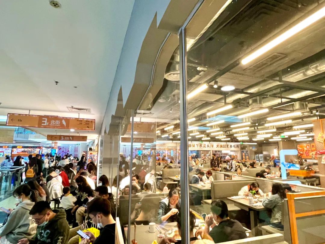 这里既有陶陶居酒家、禄运茶居等一批粤菜,又有怂重庆火锅厂、太二酸菜鱼、钢管五厂区小郡肝串串香等川渝口味,日料则有摩打食堂、寿司郎等,还有山东老家、西贝莜面村、大榕树下、TASTY西堤等等各品类的代表性品牌。如今一到晚市时间,场内的这些品牌餐饮店几乎都会排起长队。