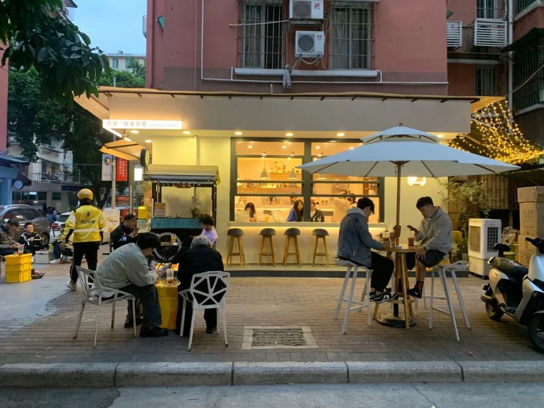 就如上海安福路每家咖啡店都挤满年轻人,六运小区的咖啡店也从不缺年轻顾客。红餐网走访发现,下午非饭点时间,社区里的咖啡店都坐满了年轻人,店里坐不下就在小区的花园里撑开一套露营椅坐。