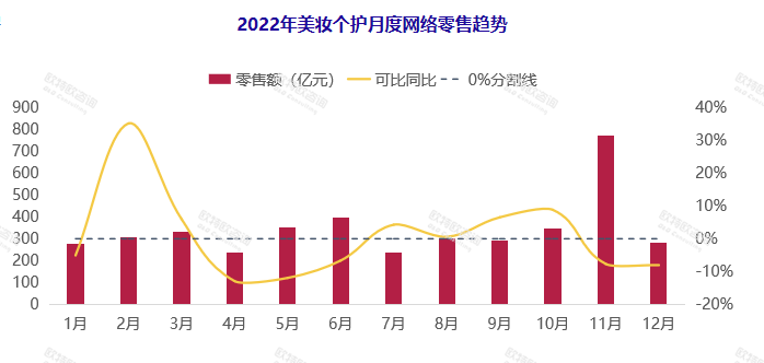 不仅如此,白皮书显示,在6月、11月两个于美妆行业较为重要的大促月份,可比同比却呈现负数,并未带动增长。此外,4、5、12月三个月份因受到疫情影响,出现严重下滑。