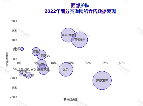 此外,面部护肤品类状态较为稳定,网络零售额占比超五成,增速趋同于整体行业,并且高端化、个性化趋势明显。白皮书显示,相对高价的面部精华、乳液/面霜类产品拉动了整个品类的增长。且护肤套装、面膜的下滑程度较大,消费者更倾向于自由搭配。“在精简护肤概念持续渗透的情况下,消费者倾向更为简单的护肤方式。”