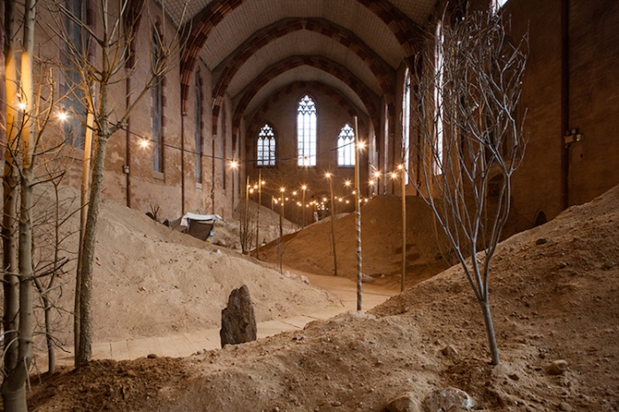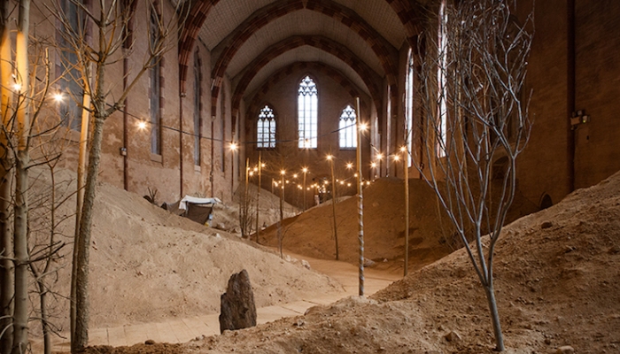 Printemps de Septembre艺术节即将到来,比利时艺术家汉斯·贝克(Hans Op de Beeck)将图卢兹的雅克比修道院改造成了多感官体验的艺术品。木质的小路引领参观者穿越沙丘与营地,沿途点缀着光秃秃的树干与一些简单的光束。《呢喃的花园》(Garden of Whispers)完美地体现了贝克的观点:“人类这种生物,将周围的世界以悲喜剧的方式呈现。”这项作品以刺激感官的方式,邀请参观者从视觉、嗅觉与听觉来体验环境。