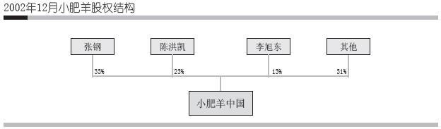 2002年12月时,张钢找来呼和浩特的区域加盟商李旭东,以他在该地的小肥羊加盟店置换出资入股小肥羊,也即由李旭东的“加盟店”变为“直营店”,李旭东因此获得13%的股权。但是李的股权,是有条件的,在股东会行使表决权要投和张钢一样的票,相当于一致行动人。