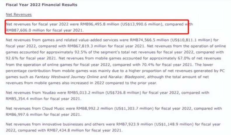其中,游戏依然是网易的“吃饭行当”,全年营收746亿元,占到了总营收的77%。
