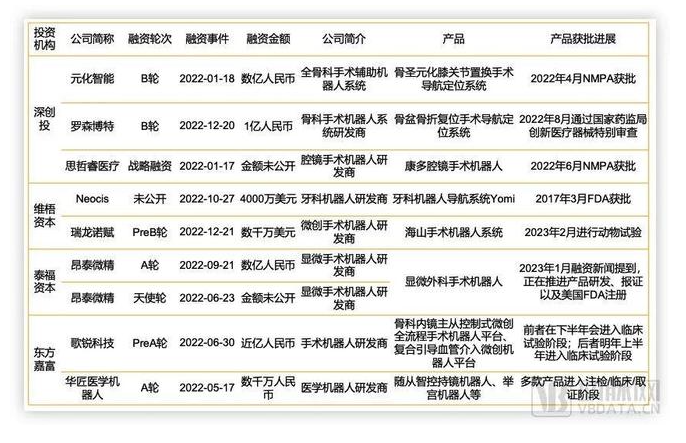 部分机构多次出手投资手术机器人,数据源于动脉橙