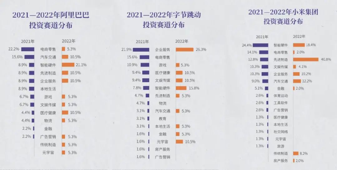 过去一年多时间里,大厂投资调仓换道,不论是数量、金额还是领域,都大大收缩,投资方向也在由虚向实,由粗放向精细化,更多地倾向于硬科技及实体经济。