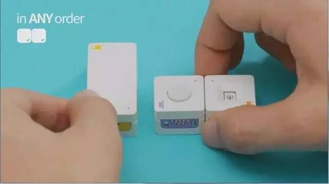 由于MODI的每一个组件都有磁头,利用磁力就可以将两个组件紧紧的连接到一起,而且它也没有顺序以及方向上的限制,你想怎么连就怎么连,要是你担心直接拼接会不会不牢靠,它还提供了有线连接的方式。