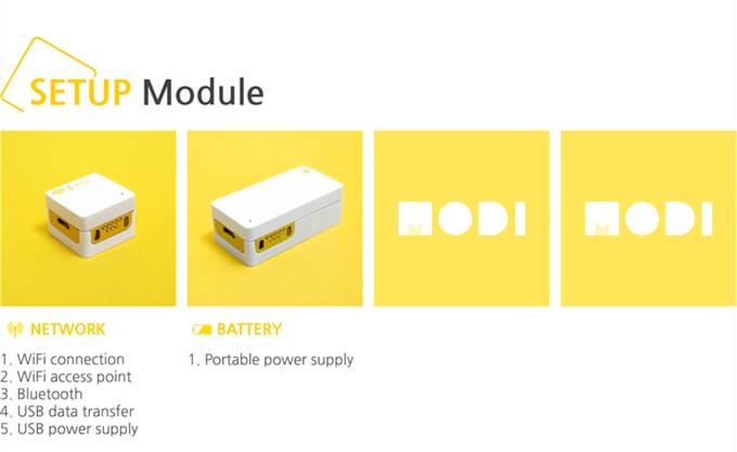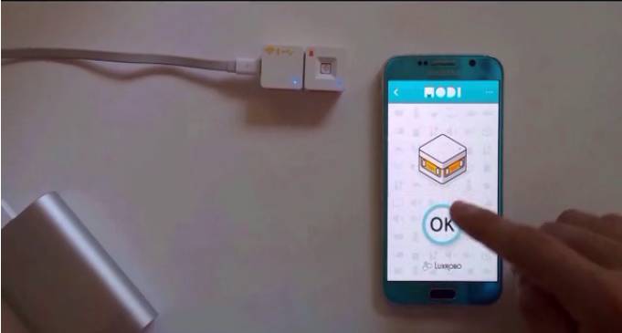 等你把组件安装好,用蓝牙就可以把智能手机上的MODI应用程序和设备连接起来。它能允许APP去控制你的设备,当你打开APP,它会搜索 MODI 网络,并且自动连接。