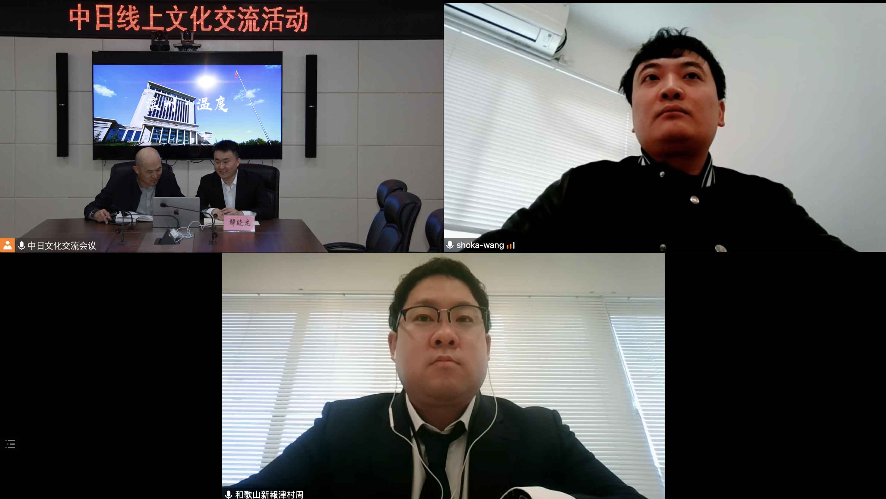 3月18日上午,滨州“中日线上文化交流会”召开,滨州市委宣传部新闻二科科长解晓龙、日本和歌山新报社市场部系长津村周、日本尚禾株式会社王圣恩出席会议,双方在会议上互寄明信片,并针对两城的美食美景展开了友好交流。