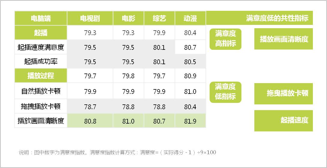 我们看到,在设计指标时,重点是要反映用户在观影时对各个具体细节的感受,例如“起播速度”这个细节,如果一点击影片就开始播放了,那么用户就会很愉快进入观影状态;如果一点击就是一个圈圈转啊转......也许用户一气之下会直接更换平台。