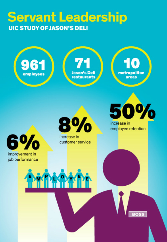 该研究的联合作者之一、伊利诺伊大学商学院博士Sandy Wayne指出,当老板们创造了一个强调信任、关怀、合作、公正和同理心的企业文化时,员工最能感到自己对于公司的价值并愿意更积极地回报公司和客户,“最好的商业领袖绝对不是那种整天说‘去做这,不要做那’的人。有服务精神的领导者说的更多的是,’我怎样能帮到你?’‘让我帮你……’‘你需要什么?’这种方式能帮助员工发掘他们全部的潜力。”