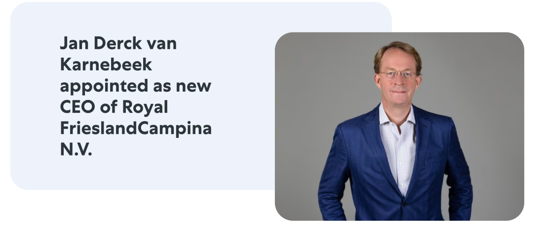 “我们很高兴欢迎 Jan Derck van Karnebeek 成为我们的新任CEO。”菲仕兰监事会主席Sybren Attema透过该通报形容他是一位商业领袖,在荷兰和国际上的多个企业中有着出色的业绩记录。