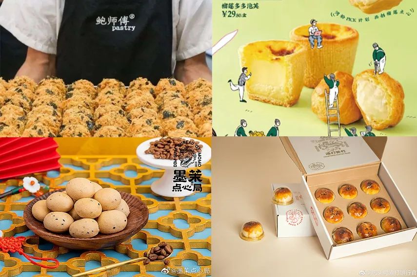 比如以标榜年轻人潮牌点心的“虎头局”,浓墨重彩突出国风的“墨茉点心局”,来自中式糕点之乡的“泸溪河”等为代表的品牌,正是社交化和零食化、具有高频及高传播度特征的新式烘焙代表。