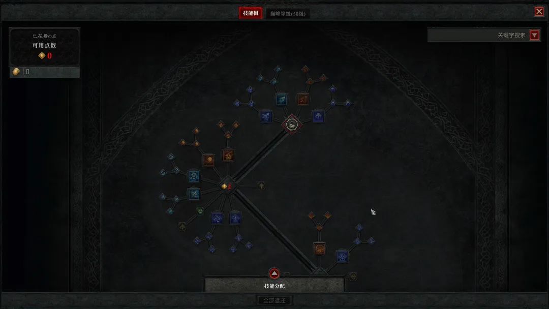 法师的被动技能也会出现在各个类别中,并且会有冰,火,电以及无属性的区分,此外除了上述六种主动技能分类,最后还会提供3种元素的终极被动技能,也是每个分支二选一,不过由于本次测试技能点数限制,无法点出终极被动技能,这里就不在过多赘述。