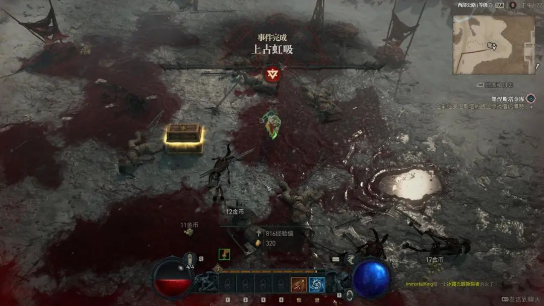 特别要提出表扬的是,《暗黑4》的打击感得到了史诗级提升,不再是3代那种尸体浮夸的满天飞,而是能让玩家切身体会到什么叫血肉横飞。尤其是搭配上神坛新加入的塔箭新天赋,割草的爽快度直线飙升。