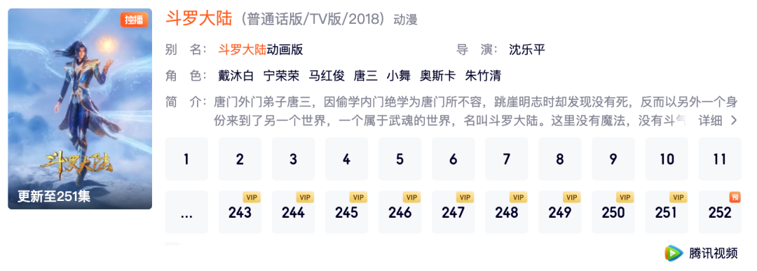 诚然,作为年番周更累积下来的庞大数量进一步放大了其劣势,毕竟不论是《伍六七》还是《魔道祖师》,最多也就只有四五十集的体量,超过250集的《斗罗大陆》光是重新配音无疑就是一笔不小的成本,如今在WeTV上提供的版本,能够提供多国语言的后期字幕已经算是相当大的进步。