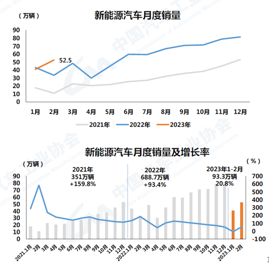 3月10日,中国汽车工业协会发布2月数据显示,当月汽车产销量分别达到203.2万辆和197.6万辆,环比分别增长27.5%和19.8%,同比分别增长11.9%和13.5%。新能源汽车产销分别达到55.2万辆和52.5万辆,环比分别增长30%和28.7%,同比分别增长48.8%和55.9%,市场占有率达到26.6%。