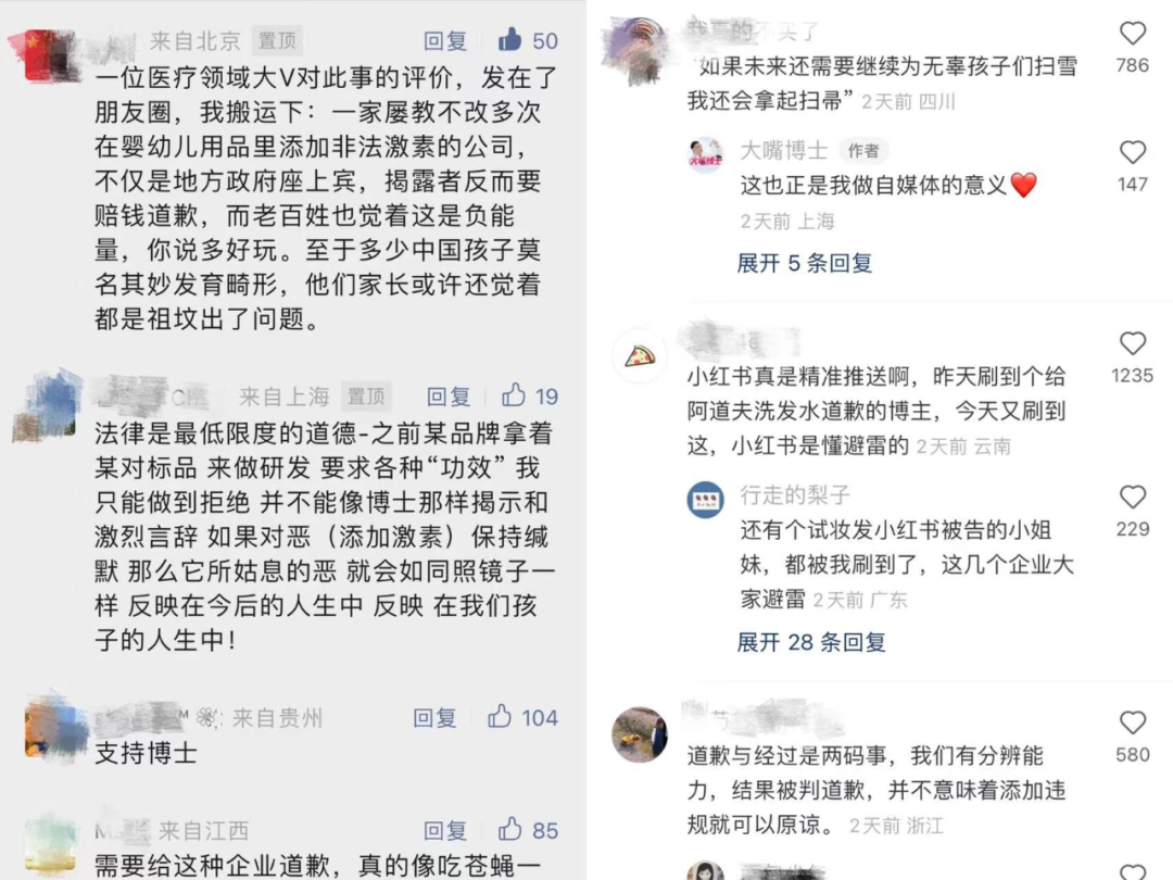 大嘴博士道歉公告一出,引起化妆品行业一片哗然,不少网友也在评论下方为该博主抱不平,几乎呈现“一边倒”的舆论。