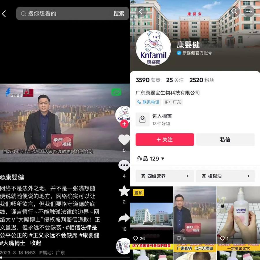 值得一提的是,在大嘴博士发布道歉的同一天,康婴宝则在抖音官号“康婴键”中,发布了当地媒体对此事件的报导,并评论到“网络不是法外之地,并不是一张嘴想随便说就随便说的地方...正义虽迟,但永远不会缺席。”疑似针对此事件进行回复。