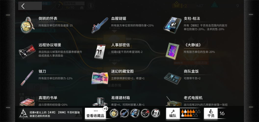 一个玩家可以重复通关获得乐趣的玩法,在集成战略这一玩法中,玩家可以在干员、收藏品、关卡、事件的各种随机中进行干员的招募、战力的提升,以达到通关结局为目的。
