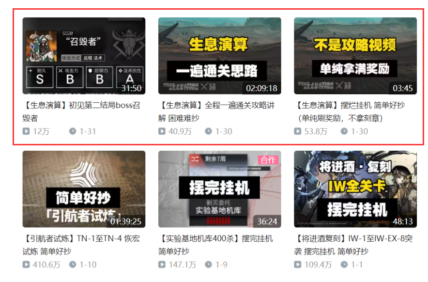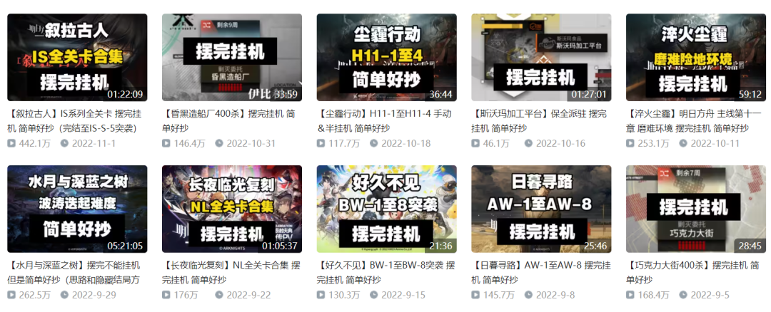 B站《明日方舟》知名平民攻略UP主“魔法ZC目录”,每次新活动的攻略视频都能破百万,而高配挂机向攻略UP主“萧然Q”,其每次活动攻略视频播放量也是以百万计数,足以见得《明日方舟》玩家对“抄作业”的热衷。