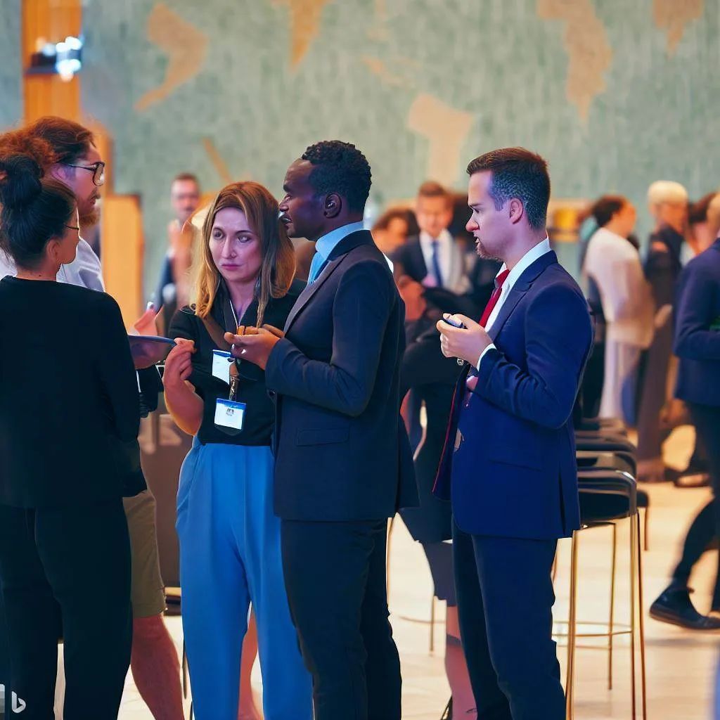 题图:由 Bing 采用 DALL-E 绘制,描绘了来自世界各地的人士在纽约联合国总部参加国际会议的情景。