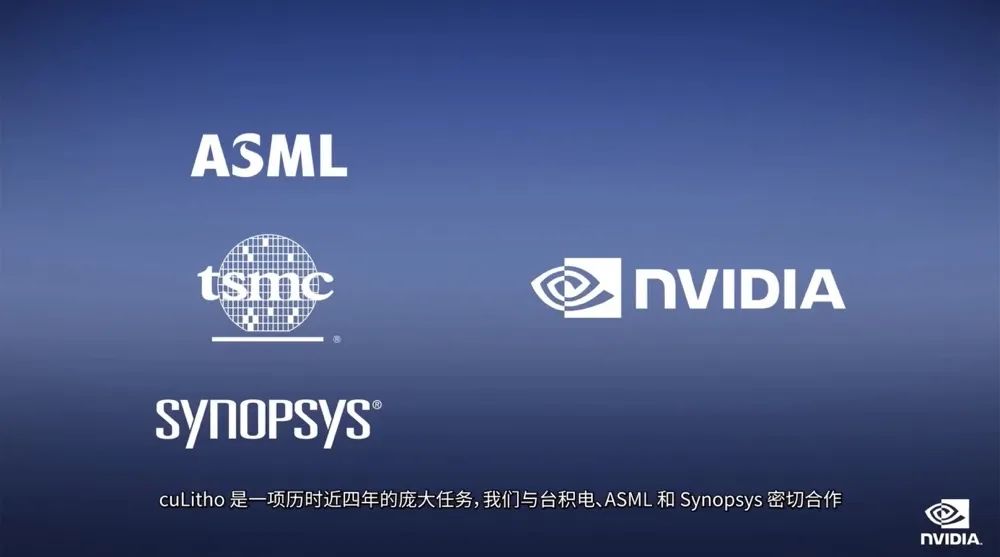 「亮点」是英伟达秘密研发四年、向芯片制造业甩出一枚技术“核弹”——通过突破性的光刻计算库cuLitho,将计算光刻加速40倍以上,使得2nm及更先进芯片的生产成为可能。全球最大晶圆厂台积电、全球光刻机霸主阿斯麦、全球最大EDA巨头新思科技均参与合作并引入这项技术。