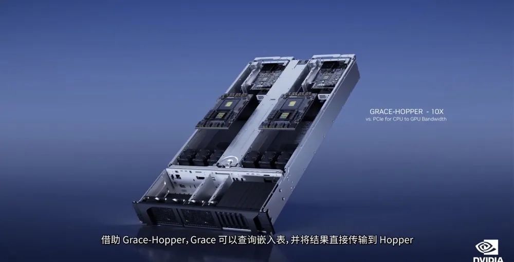 (4)Grace Hopper超级芯片:适用于推荐系统和大型语言模型的AI数据库,图推荐模型、向量数据库和图神经网络的理想选择,通过900GB/s的高速一致性芯片到芯片接口连接英伟达Grace CPU和Hopper GPU。