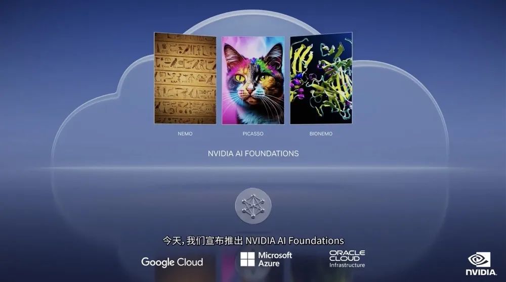 英伟达还推出了全新云服务及代工厂NVIDIA AI Foundations,使企业能够构建、改进、运营使用其专有数据训练的、用于特定领域任务的定制大模型和生成式AI模型: