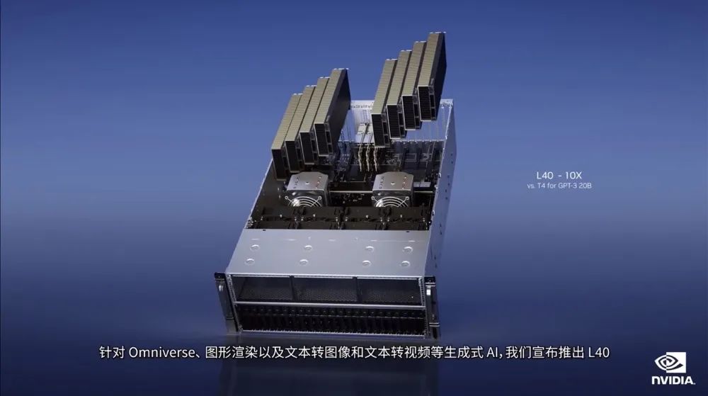 (2)L40:用于图像生成,针对图形和AI支持的2D、视频和3D图像生成进行了优化,推理性能是英伟达最受欢迎的云推理GPU T4的10倍。