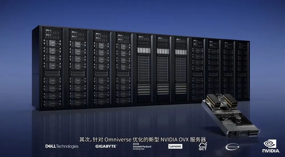 面向元宇宙领域,英伟达推出了第三代OVX计算系统和新一代工作站,为基于NVIDIA Omniverse Enterprise的大规模数字孪生提供动力。