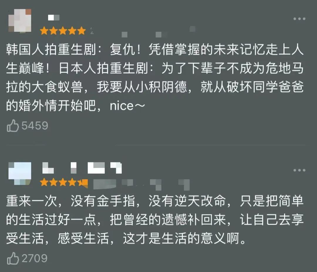 《重启人生》的关键词看起来都很普通:重生、30+女性、女性友谊。每个关键词都能在包括国产剧在内的所有剧集中找到相对应的内容。“重生”在去年热播韩剧《财阀家的小儿子》里,是吹响“走向人生巅峰”的号角;30+女性群像剧的标签,也早已是国产剧领域反复使用的爆款密码。